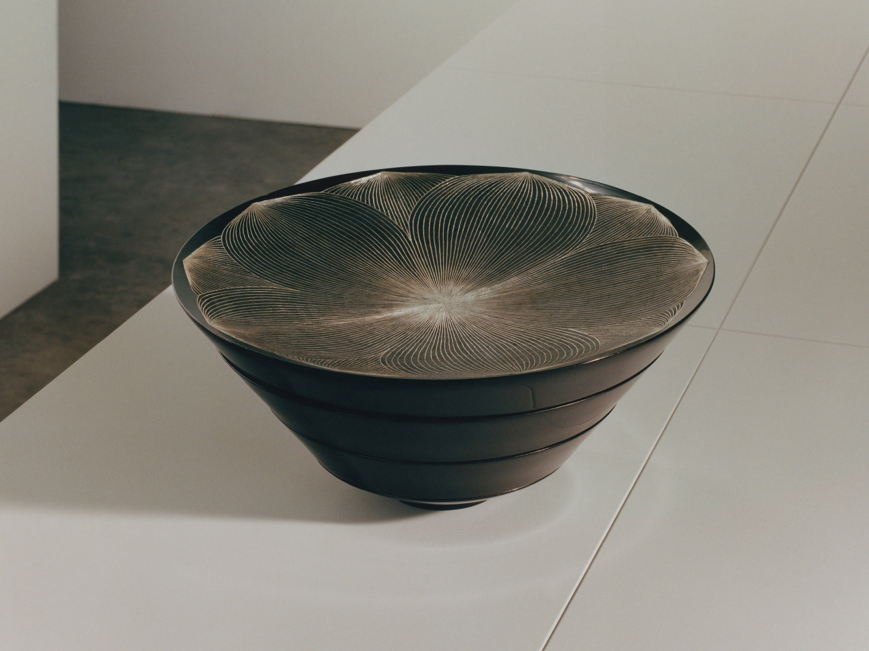 This piece fuses kitchenware with the sacred lotus flower, with life seemingly sprouting from each dish. The chiselled patterns of round flower petals are symbols of peace and happiness, modernising the lotus’ traditional representation. Ott lacquer is added to enhance the silver inlay and prevent oxidisation. Strikingly modern, the piece propels ancient emblems and daily rituals into innovative ground.